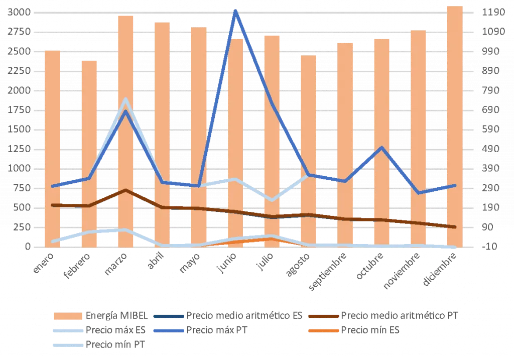 Below, we will present an analysis of the evolution of the Iberian electricity market –focusing especially on the Spanish zone– within the framework described above for 2022 compared to the previous year.